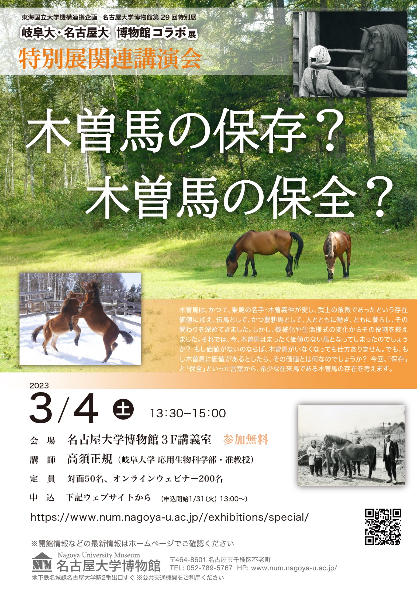 (会場:名古屋大学博物館 木曽馬展示スペース)
