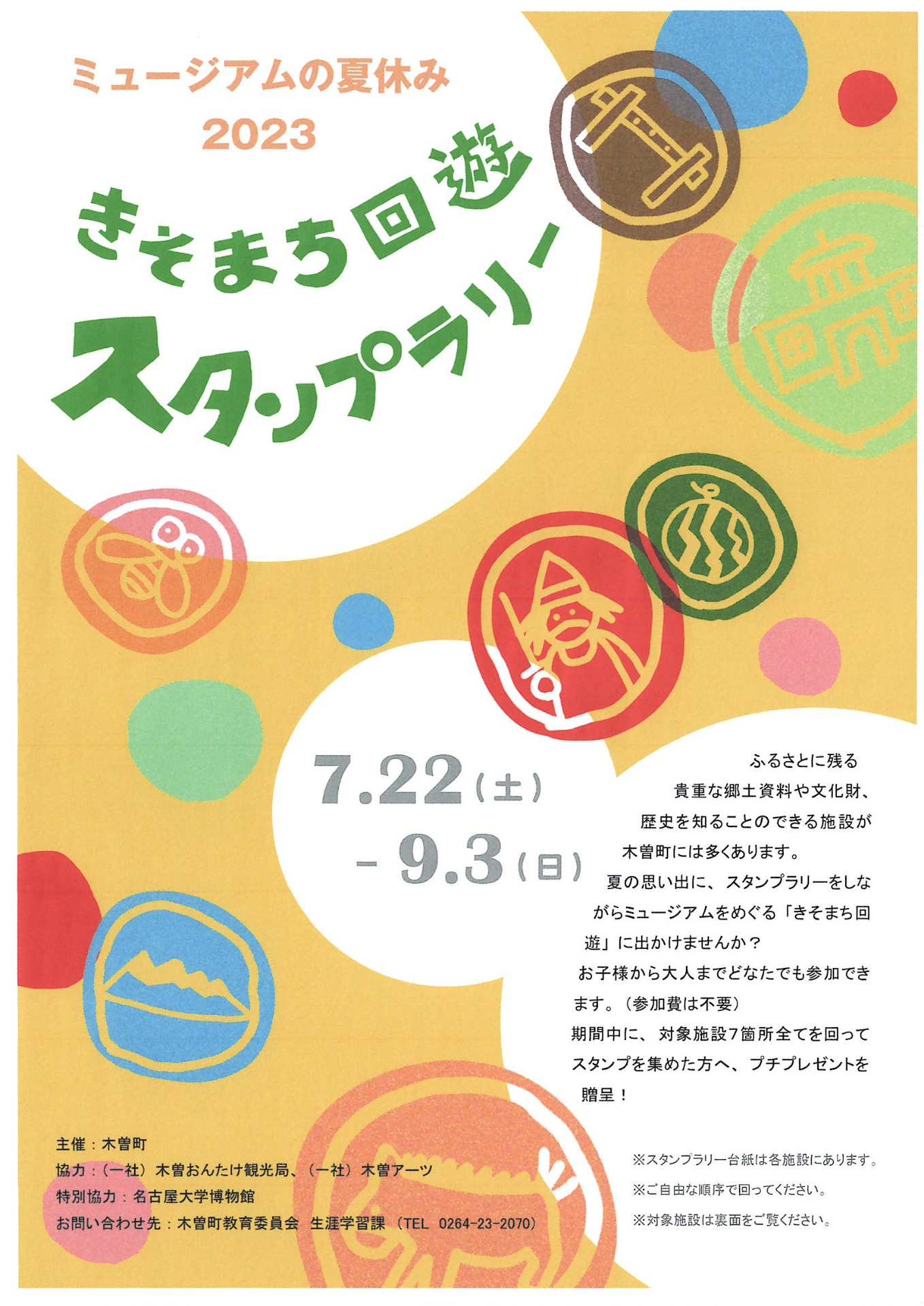 木曽町(長野県)では、2024年8月3日(土)~11月30日(土)まで、木曽町をめぐる旅として、「きそまち回遊ミュージアムスタンプラリー」を開催しています。