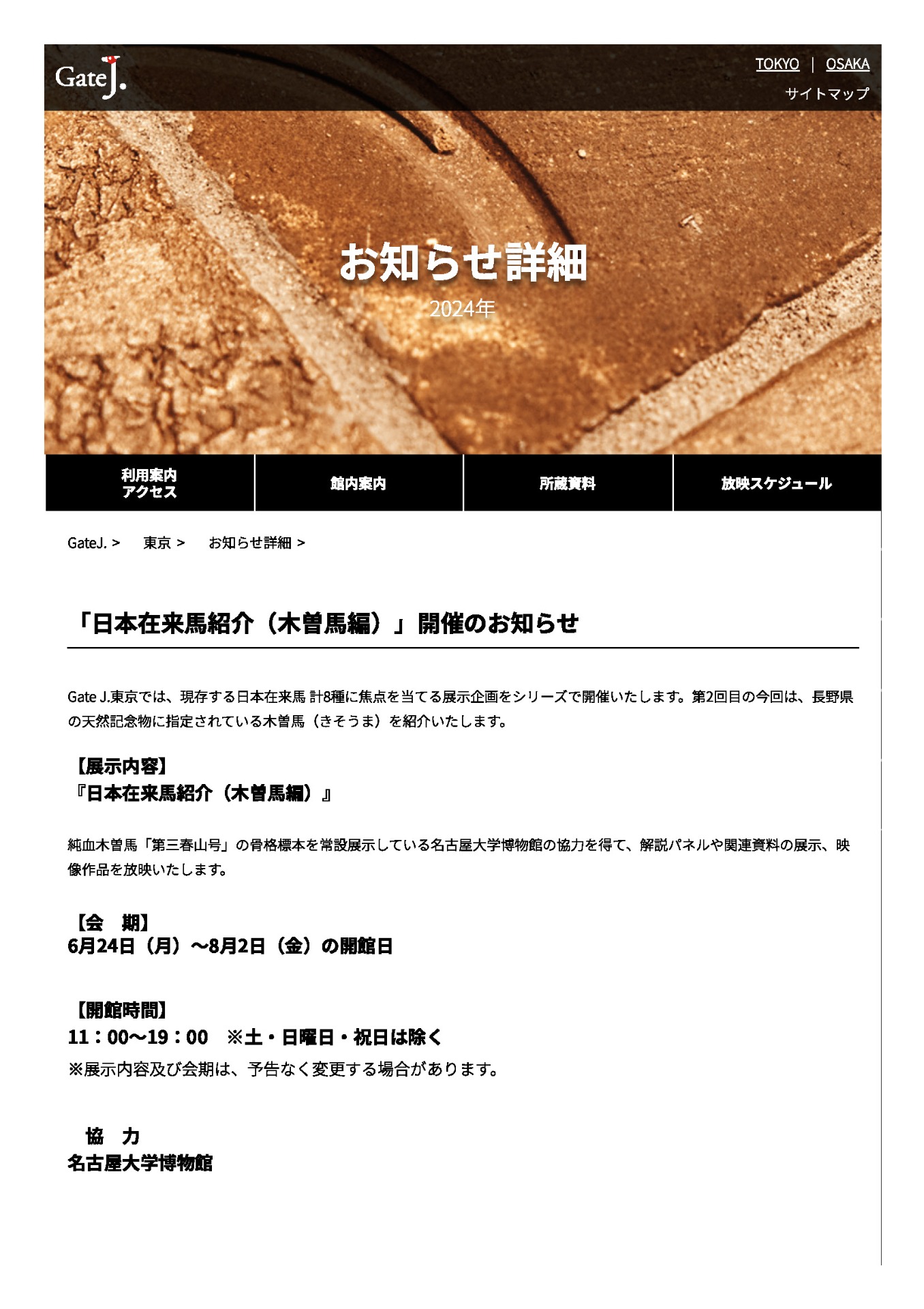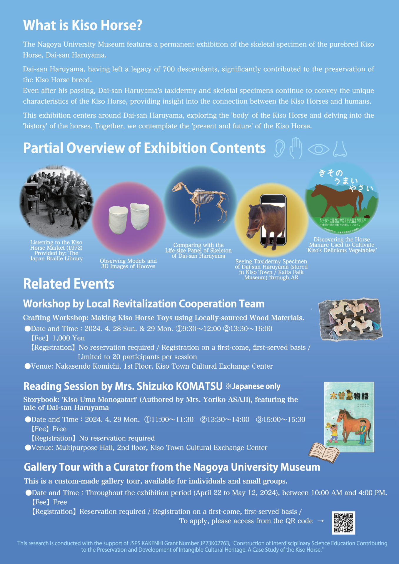 We will document exhibitions and events related to Kiso Horse primarily hosted by the Nagoya University Museum, detailing the background, objectives, outcomes, and reflections of each project.