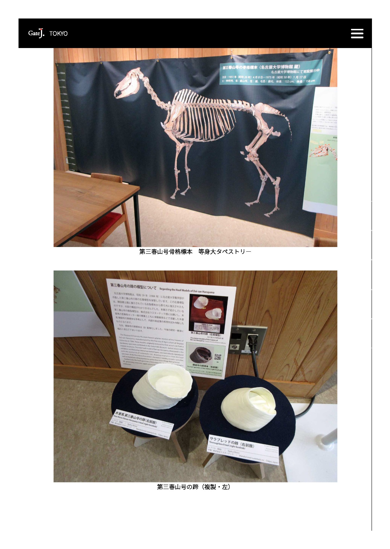 コレクションの一つ、「ウマ」においては、名古屋大学博物館所蔵の木曽馬(最後の純血木曽馬と言われる「第三春山号」)の全身骨格標本を中心に、