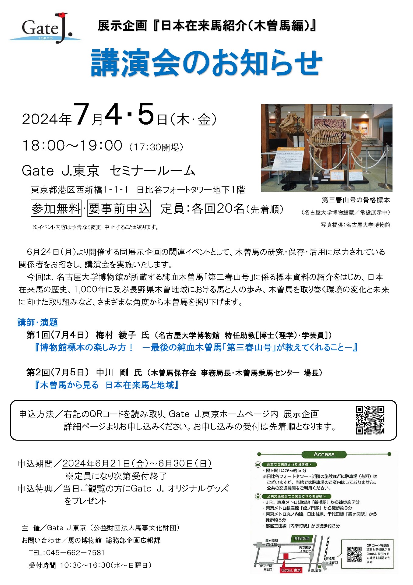 From Nagoya University Museum, we will hold a lecture titled 'How to Enjoy Museum Specimens! — What the Last Purebred Kiso Horse 'Dai-san Haruyama' Can Teach Us.